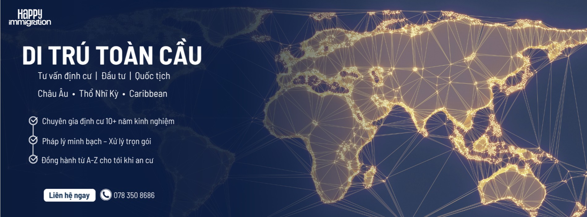 Giấc mơ về một cuộc sống mới tại các quốc gia phát triển, với môi trường sống an toàn, nền giáo dục tiên tiến và cơ hội phát triển không giới hạn cho cả gia đình, luôn là khát vọng của nhiều người Việt. Thấu hiểu sâu sắc mong muốn đó, Happy Immigration ra đời với sứ mệnh trở thành người bạn đồng hành đáng tin cậy nhất, chắp cánh cho những giấc mơ an cư và đầu tư quốc tế của bạn trở thành hiện thực.
